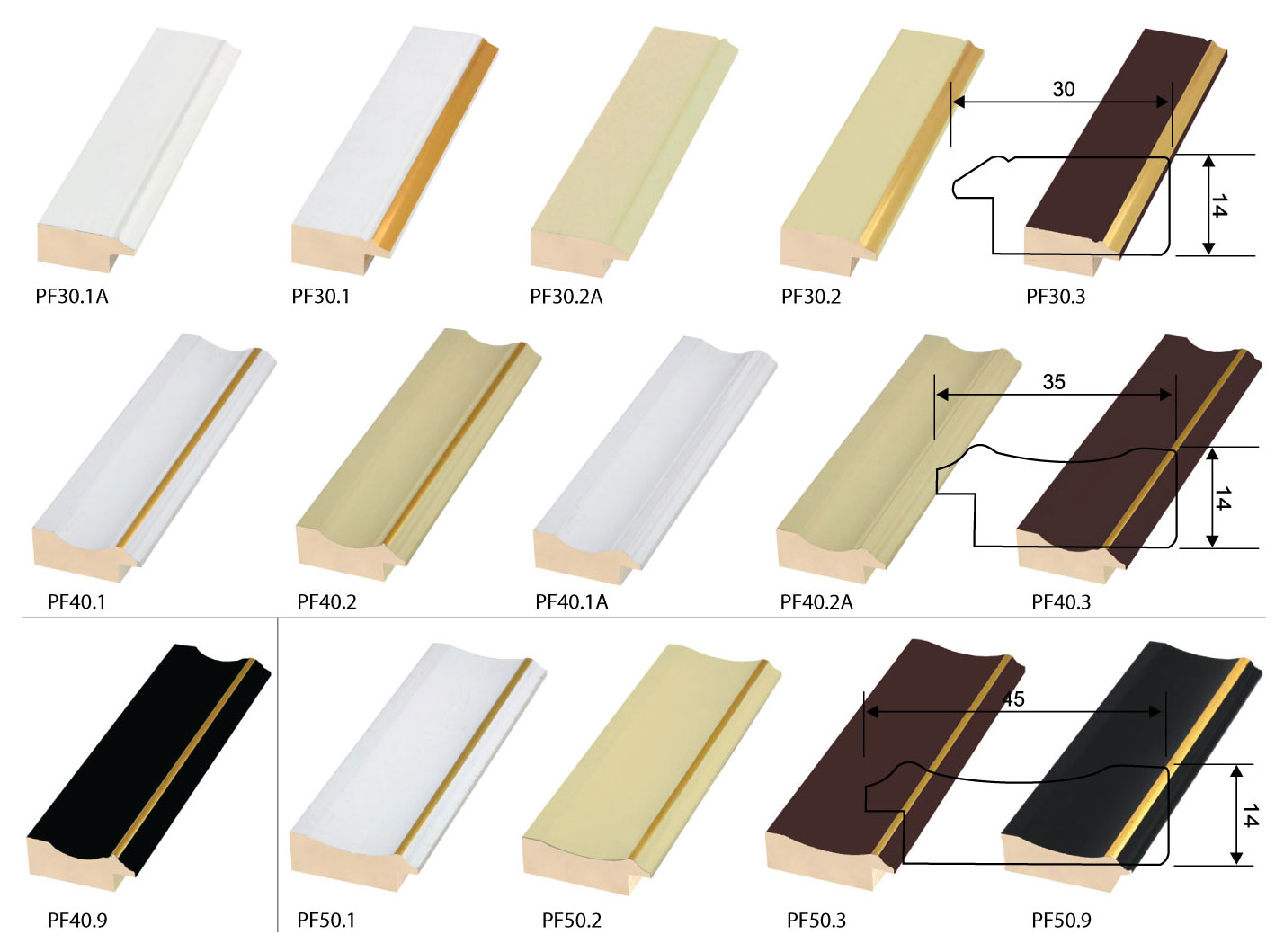 Ostale lajsne veće širine F40-F70 se prodaju na 5m dužine (2 lajsne)